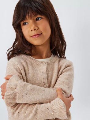 Kids' Sequin Frill Cuff Cardigan, Cream