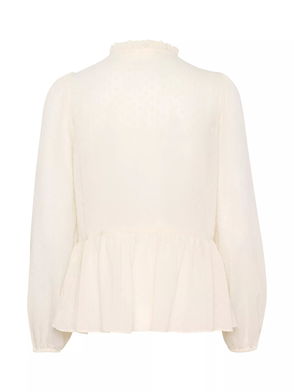 Long Sleeve Lace Trim Smocked Blouse In Ecru