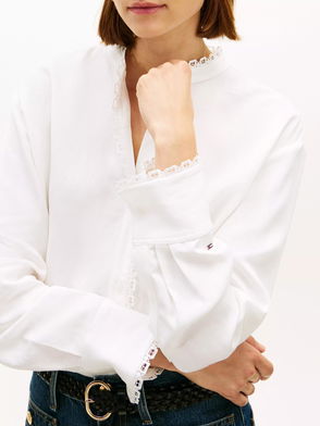 Oversized Lace Trim Shirt, Ecru