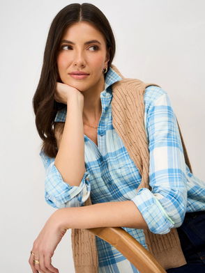 Relaxed Fit Flannel Check Shirt, Aqua Blue
