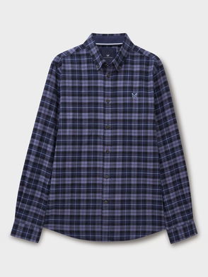 Brushed Cotton Regular Fit Dogtooth Flannel Shirt, Cobalt Blue