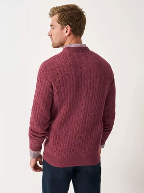 Heritage V-Neck Cable Knit Jumper, Berry Red