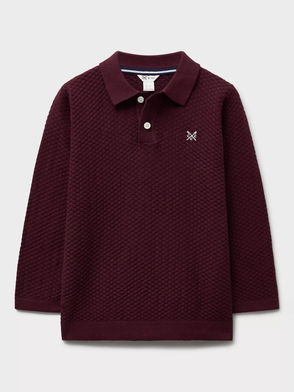Kids' Knitted Long Sleeved Polo Shirt, Red Wine