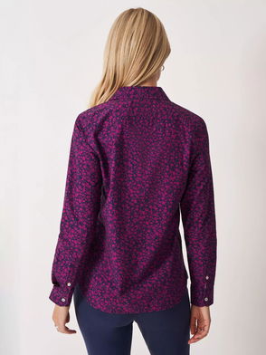 Notch Neck Leopard Floral Print Top, Berry/Navy