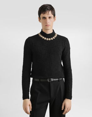 Wool Round-neck Sweater With Bejeweled Buttons