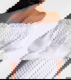 Off-shoulder Cotton-blend Poplin Crop Top