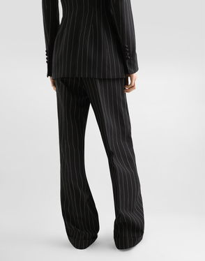 Straight-leg Pinstripe Wool Pants With Turn-ups