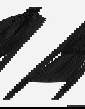 Silk Organza Jacquard Blouse With Polka-dot Design And Pussy-bow