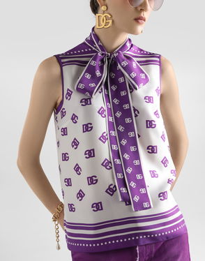 DG Logo All-over Silk Twill Top