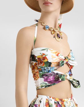 Rose Bouquet-print Cotton Bustier Top
