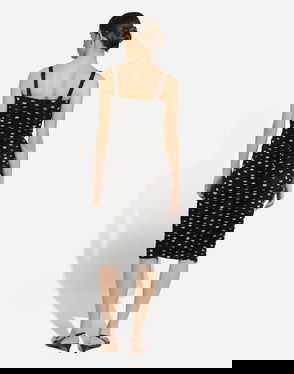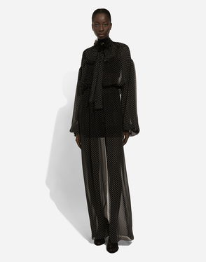 Tulle Calf-length Sheath Dress With Draping And Polka-dot Print