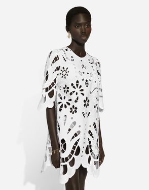 Floaty Short Cotton Dress With Floral Openwork Embroidery