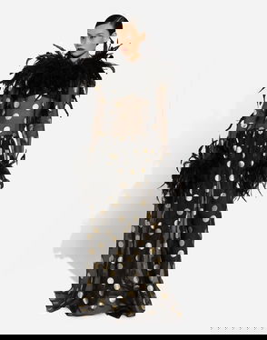 Long Polka-dot Silk Organza Dress With Feathered Details