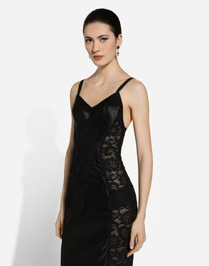 Calf-length Floral Lace Sheath Dress With Contrasting Lining