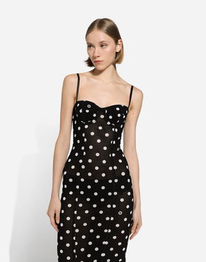 Marquisette Sheath Dress With Polka-dot Print And Corset Details