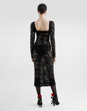 Calf-length Sheath Dress In Branded Floral Cordonetto Lace