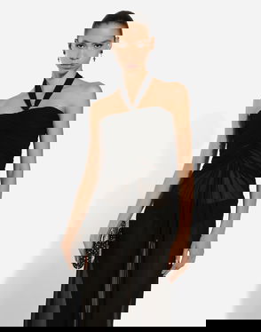 Long One-shoulder Stretch Cady Dress With Feathered Neckline