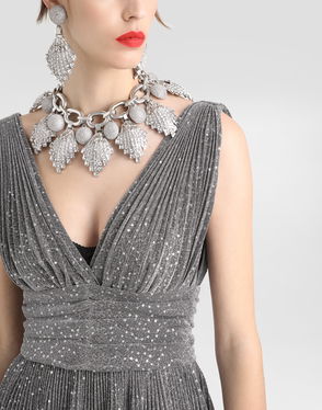 Long Pleated Dress With Micro-sequin Embellishment