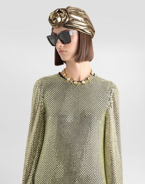 Short Long-sleeved Dress In Crystal Mesh