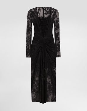 Calf-length Circle-skirt Dress In Cordonetto Lace