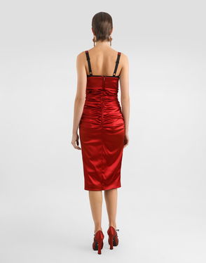 Draped Satin Calf-length Dress With Conical Cups