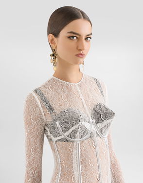 Calf-length Satin And Lace Dress With Corset Details