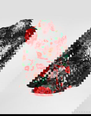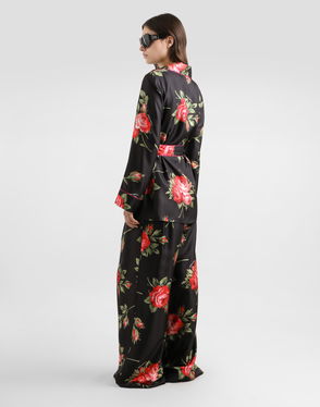Silk Habotai Pajama Shirt With Rose And Peony Print