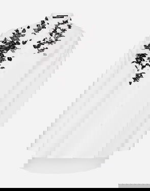 Long-sleeved Cotton Shirt With Embroidered Collar