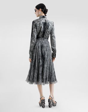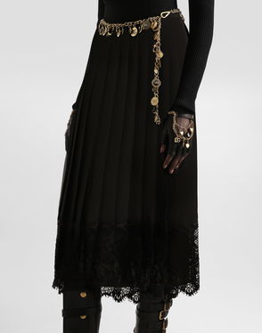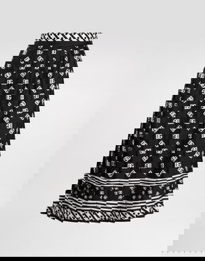 Pleated Silk Twill Calf-length Skirt With All-over DG Logo Scarf Print