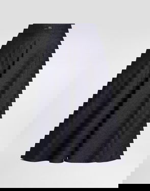 Denim Calf-length Circle Skirt With DG Logo Pin