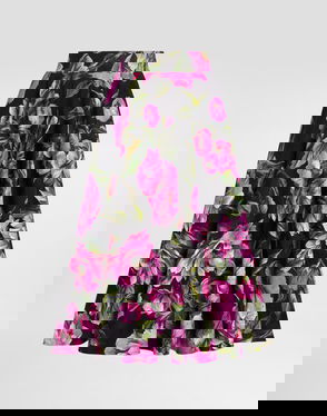 Peony And Rose-print Charmeuse Calf-length Circle Skirt