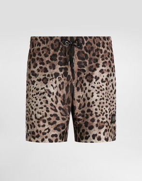 Mid-length Swim Trunks With Leopard Print