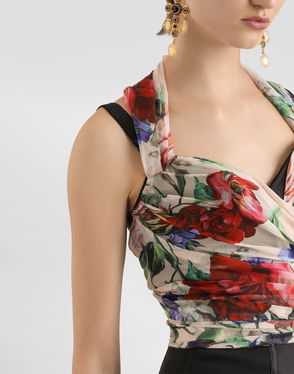 Short-sleeved Silk Blouse With Pussy-bow And All-over DG Logo Scarf Print