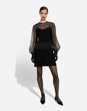 Short Organza Dress With Lace Inlay
