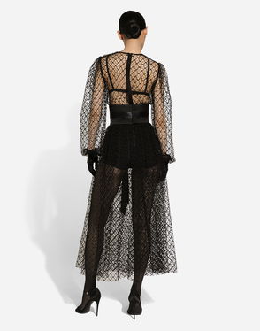 Calf-length Mesh Dress With Wool Crepe Belt
