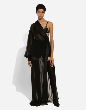 Long Silk Chiffon Tuxedo Dress