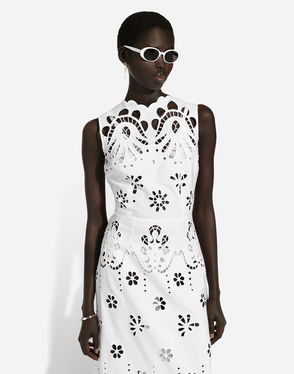 Floaty Short Cotton Dress With Floral Openwork Embroidery