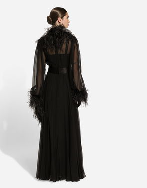 Long Silk Chiffon Dress With Ostrich Feather Details