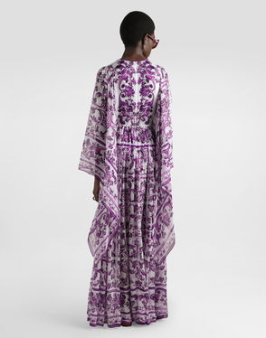 Majolica-print Long Chiffon Dress
