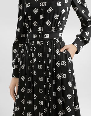 Silk Satin Jacquard Shirt Dress With DG Logo