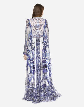 Long Sleeveless Silk Chiffon Dress With Majolica Print
