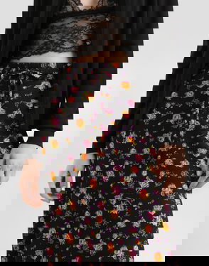Small Rose Bouquets-print Flared Charmeuse Skirt