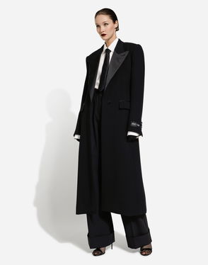Long Double-breasted Tuxedo Coat In Double Wool Gabardine
