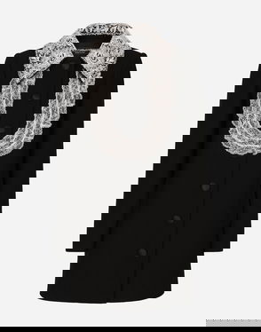 BELTED DOUBLE-BREASTED CREPE AND LACE COAT