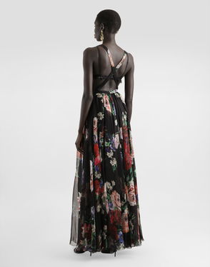 Long Floral-print Chiffon Dress
