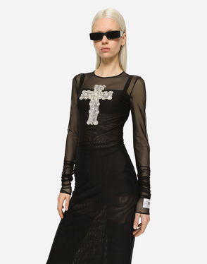 Long Tulle Dress With Rhinestone Cross Embellishment