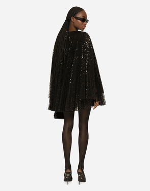 Short Pleated Dress With Full Sequined Sleeves