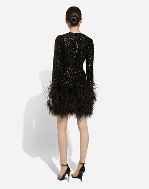 Short Sequined Dress With Feather Trim