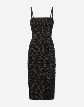 Charmeuse Calf-length Dress With All-over DG Logo Print