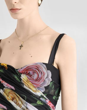 Short Tulle Dress With Draping And Peony And Rose Print